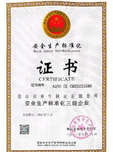 安全生產(chǎn)標(biāo)準(zhǔn)化三級企業(yè) 證書 -