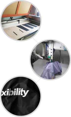 根據面料特性,仔細選擇對應的膠條,再由經驗豐富的過膠師傅測試面布與膠條的吻合溫度,杜絕水洗脫膠,起泡等問題。