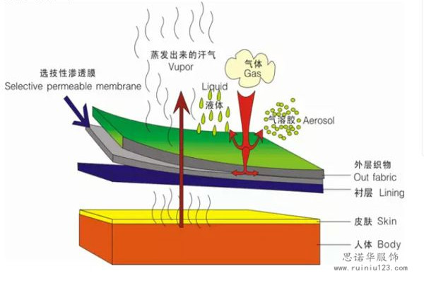 一般是指在布料底面做膠底,分coating和lamination兩種,coating就是常說的涂層,lamination是復合一層防水料在后面。這個才是真正的防水!一般真正的沖鋒衣布料都是會做噴刷防水涂料+后整工序做防水透氣膜的處理,做到對應的防水指數(shù)。而兩層工藝都做了的,用水龍頭的水直接沖刷布料的表面,底面還是保持著干爽的。