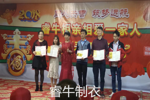 大家都知道沖鋒衣廠家的旺季是在8月到12月,但年底也是制衣生產工廠最忙的時段,在忙的同時我們的年會也是每年必須開展的活動。我們佛山市睿牛制衣廠的年會節(jié)目是沒有專人策劃的;從年會的策劃,個人分享到每一個節(jié)目都是睿牛每一位家人的共同付出。總經理要求年會節(jié)目必須人人參與,人人上臺,不求節(jié)目有多么的精彩,重在大家都參與其中。開展年會都是大家所期盼的活動,但讓大家比較郁悶的是,每天工作10多個小時,哪還有時間排練節(jié)目,所以節(jié)目的排練也是大家最為苦逼的事,我們睿牛人共有的精神必定不允許馬虎行事,每一件事都必須全力以赴,所以大家都利用下班后的那幾十分鐘時間緊湊進行排練,都希望把自己最好的一面展現給大家。現在每天的下班時間各角落都有我們在排練的身影。所以年會既能展開企業(yè)歷史回顧、企業(yè)未來展望,更能鼓勵團隊士氣、熔煉團隊,展望美好未來而策劃實施的一種集會形式。