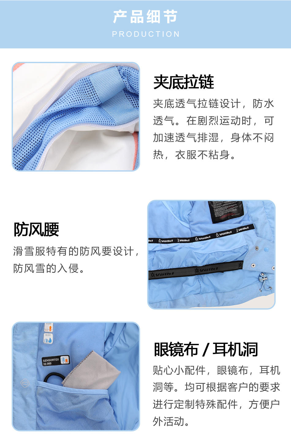 防水拉鏈采用無縫壓膠防水拉鏈激光熱封工藝貼合,面料采用進口防水透氣涂層膜,使防水透氣膜與面料完美結合。可根據客戶需求完成戶外沖鋒衣定制。